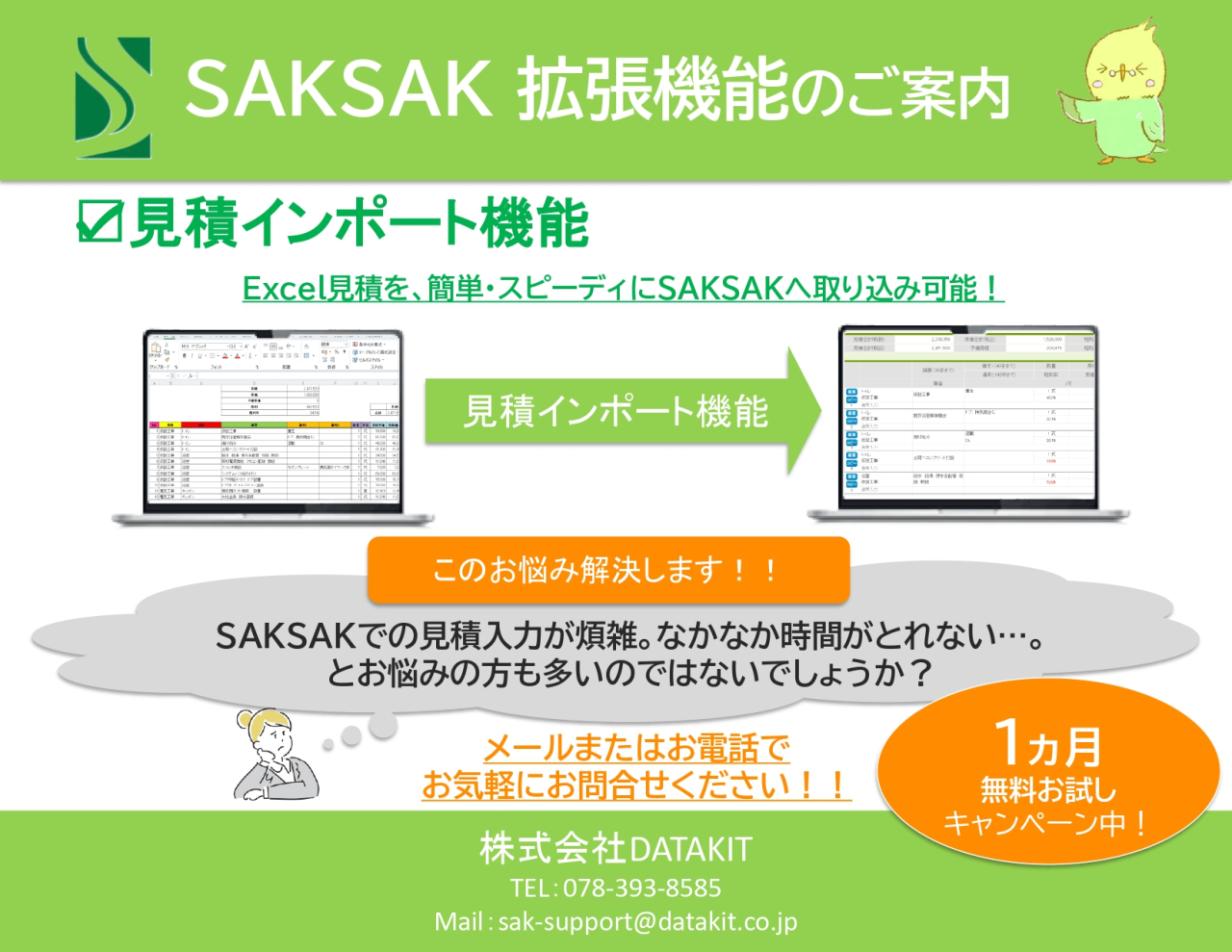 初回となる今回はSAKSAKの 拡張機能「見積インポート」 をご紹介いたします。