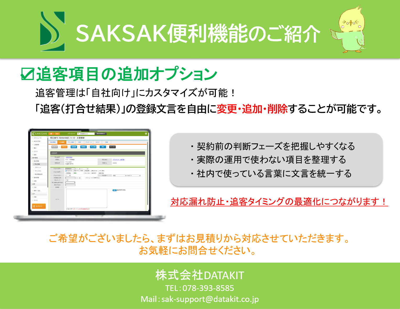 追客管理は、「自社向け」にオプション対応でカスタマイズが可能です!