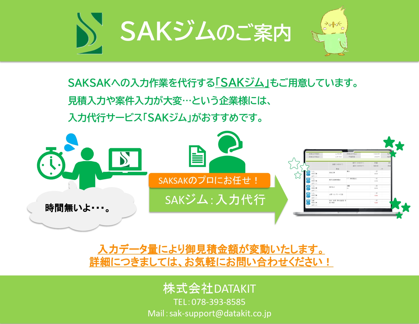 SAKSAKをご利用いただき、誠にありがとうございます。 本日は、「SAKジム:入力代行サービス」のご案内です!
