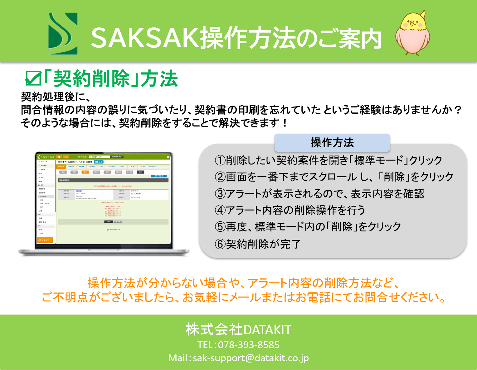 本日は、「契約削除」の方法につきてご案内いたします!